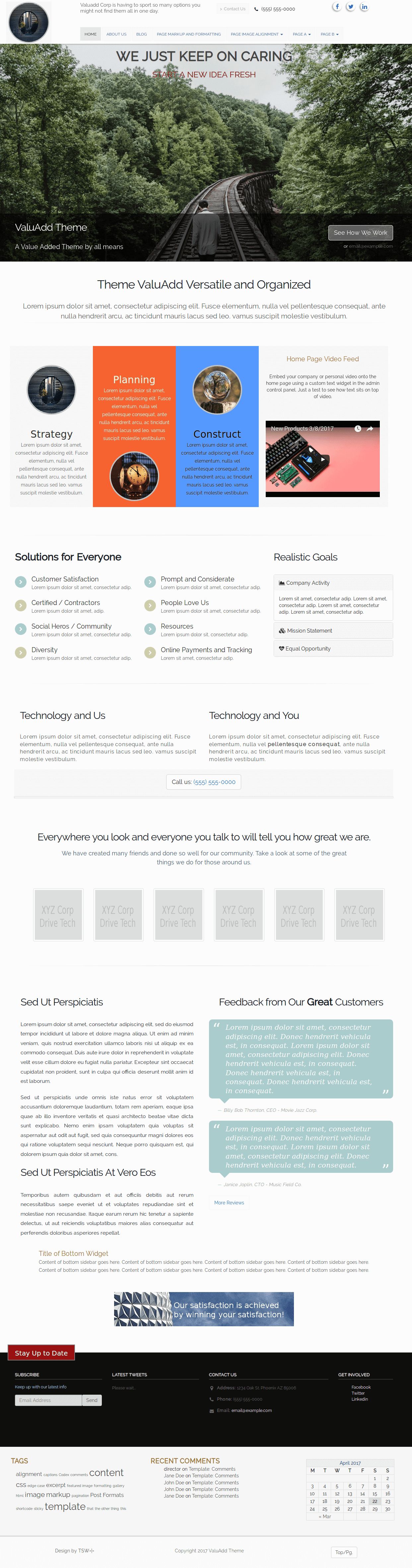 Valuadd comes with tons of options to build a beautiful website or blog. Add custom tag lines and SEO friendly content to the home page with ease. No fancy learning-curve of page builders, just simple text boxes and widgets that make even a novice an expert. Valuadd has the basic page layouts* for Home Page, Single Posts and Blog/News pages. Clean fonts and very legible metadata fields. Options include title visibility per page type--helps build better SEO content; excerpt length; no script slide-show; footer banner; multiple home page sections to custom configure including video embed, three menus, pitch and bullet list sections, reviews and newsletter sign up, responsive class automatically assigned to images, address, email and phone all get auto placement all included and a banner insert for bottom of page. Backup and restore your options. Contact Us page includes auto map insert and a Full width page template. HTML5 and device responsive. *Blog and single Posts have one right sidebar, Pages have two right sidebars. For demo please visit https://larryjudd.us/valuadd