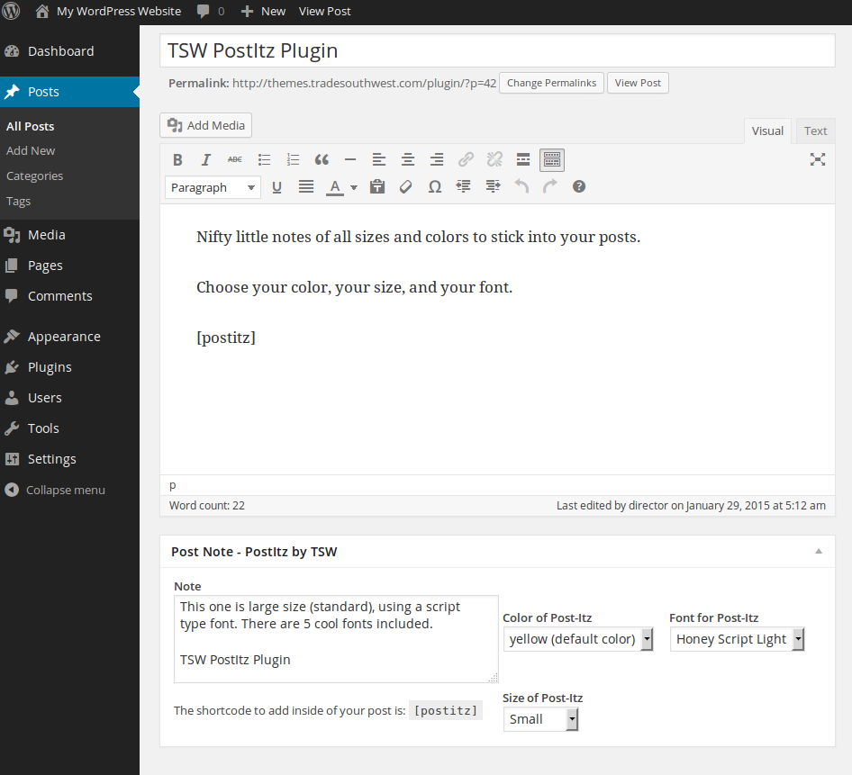 3. Place [postitz] in your editor where you want the note to appear.