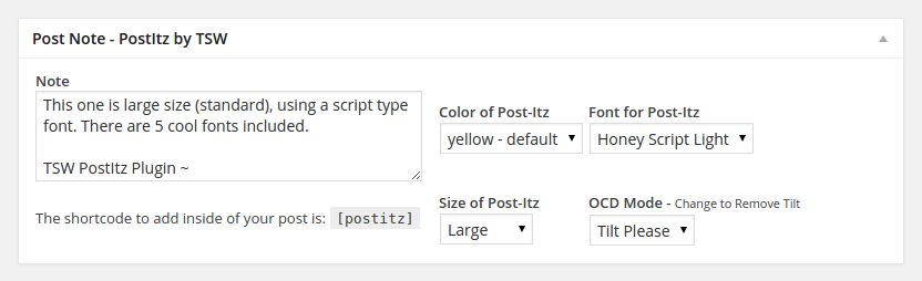 Description: User meta-box to add shortcode into post which outputs fancy post it note.
